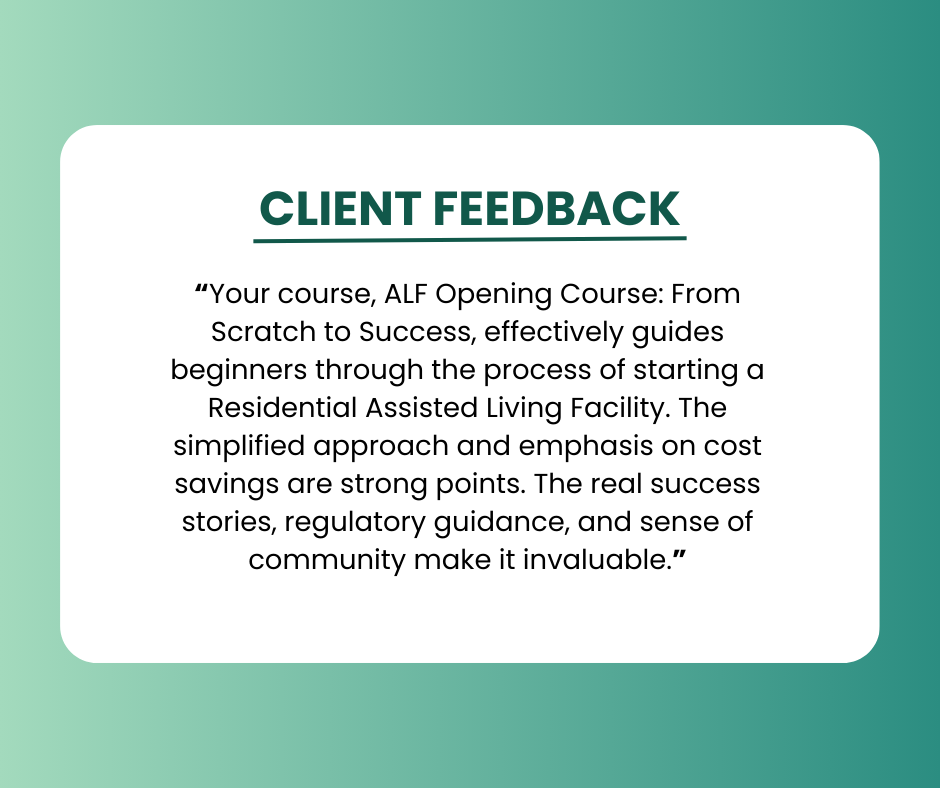 Ready to open your Assisted Living Facility? Our proven step-by-step services will guide you through licensing, compliance, and launch.